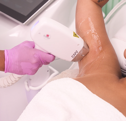 Our state-of-the-art AW3® V‑Combo™ system uses a triple‑wavelength diode handle (755 nm Alexandrite, 810 nm Diode, 1064 nm YAG), making it safe and effective for all skin types, from the palest to the darkest. A crystal‑cooled heat‑exchange tip keeps treatments comfortable. The laser targets pigment in hair follicles, disabling them and inhibiting future growth. Ideal for those tired of shaving, waxing, or ingrowns. Multiple sessions are needed for long‑term results, and a patch test is mandatory before beginning treatments.