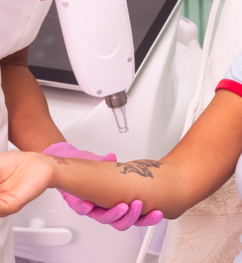 Using the AW3® V‑Combo™’s Q‑switched Nd:YAG laser, we safely break down various tattoo inks — even multicoloured designs — by targeting pigment particles with high‑intensity light pulses. Your body’s lymphatic system then gradually removes the ink fragments. Sessions vary based on tattoo size, age, and ink colours. A patch test and consultation are required before treatment begins.